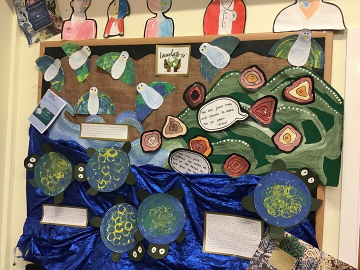 Little Way Week is inspired by St Thérèse of Lisieux, patron of mission. As a child St Thérèse dreamed of being a missionary. With age she understood that very few of us are called to make big and radical gestures, but that through small, loving actions we too can deliver God’s love to the world. We marked the week in conjunction with the text ‘It’s Up to Us: A Children’s Terra Carta for Nature, People and Planet. This inspired us to create artwork and to consider the small, loving actions that we can take to deliver God’s love to the world in line with the message from Pope Francis in Laudato Si.
