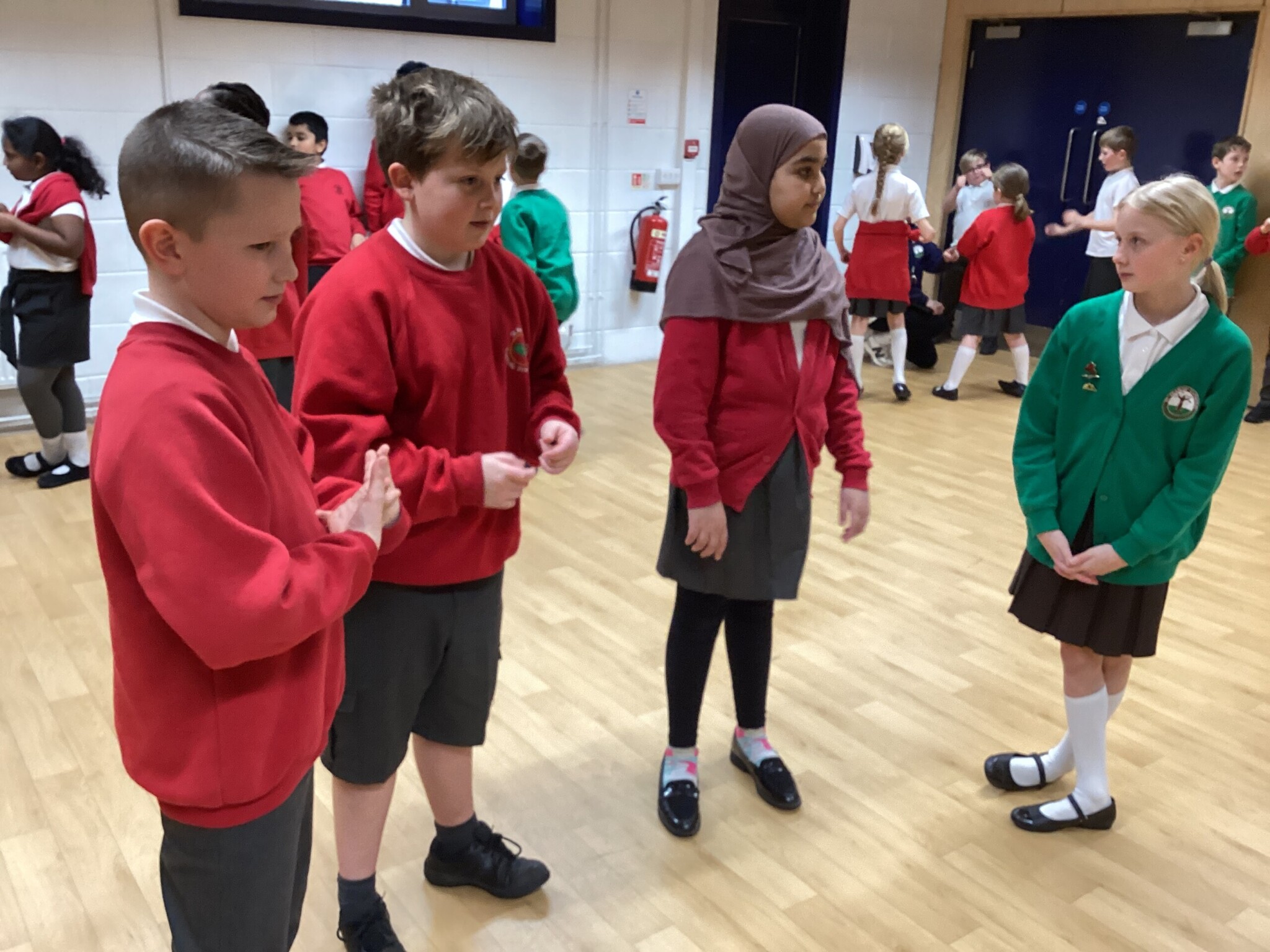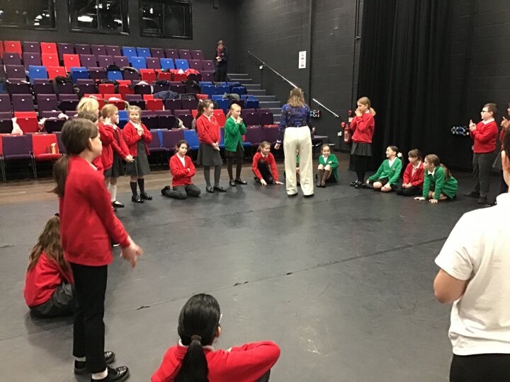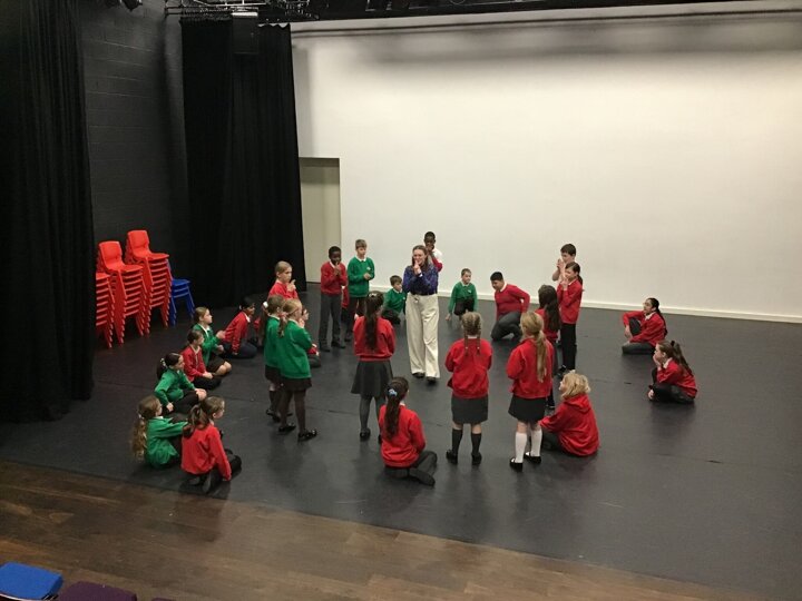 For the second successive year, the Year 5 children from Oak Class have linked up with St. Francis School, Goosnargh and English Martyrs’ School, Preston, as part of the Linking Network. This allows for schools from a range of diverse areas and differences to come together to learn from each other. We all came together at Burnley Youth Theatre to do drama games together. The children had a wonderful time, making lots of new friends.