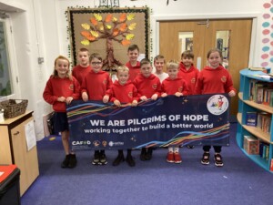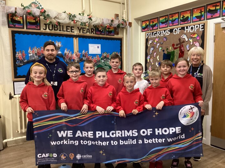 • Volunteer Support: We have welcomed CAFOD volunteers to support launch our Pilgrims of Hope Year. Christine Dewhurst from CAFOD is a friend of the school having worked with us for 15 years, she runs 3 workshops a year across KS1 and KS2.